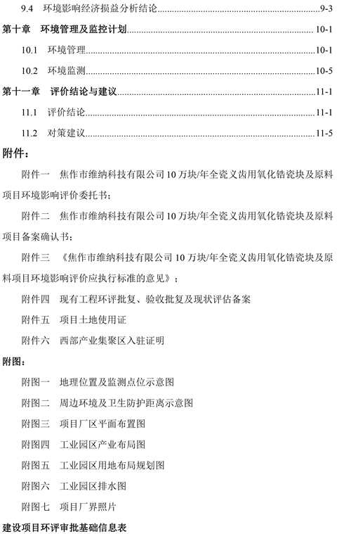 關(guān)于焦作市維納科技有限公司10萬塊/年全瓷義齒用氧化鋯瓷塊及原料項目環(huán)評報告書信息公司